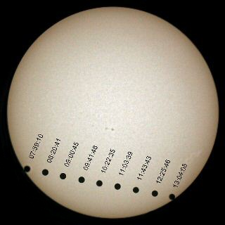 Der Planet Venus vor der Sonnenscheibe zu verschiedenen Zeitpunkten